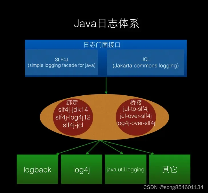 绑定的原理是因为slf4j-api中的LogFactory通过StaticLoggerBinder.getSingleton()获取具体实现logger,一个绑定包实现了org/slf4j/impl/StaticLoggerBinder.class,所以它们在编译时刻就绑定在一起,而绑定包中的StaticLoggerBinder类会绑定对应的实现。这部分看看源码就一目了然了。 - 一系列桥接,它们把已存在的日志门面适配到SLF4J(jul-to-slf4j)。或者仿效已存在的日志门面或者实现(jcl-over-slf4j和log4j-over-slf4j)。