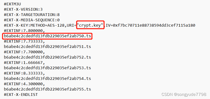 将ts、m3u8、key全部下载到本地后,对m3u8进行编辑,将红框中的内容替换为本地路径。先通过开发者工具找到m3u8文件,再通过m3u8找到key。