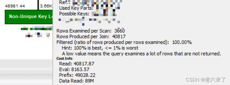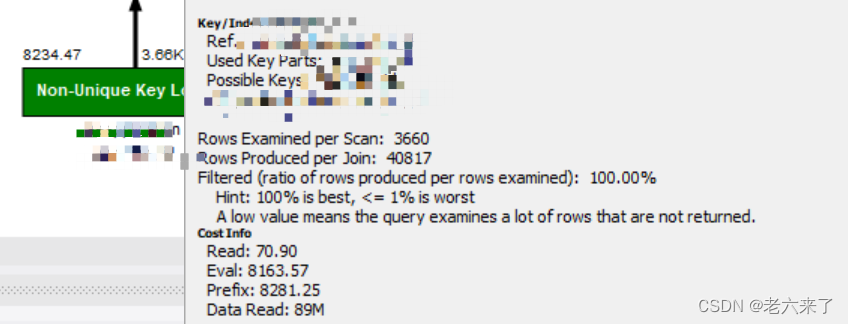 去掉了大部分无用的字段,count字段改成主键,再看读取成本少了很多
