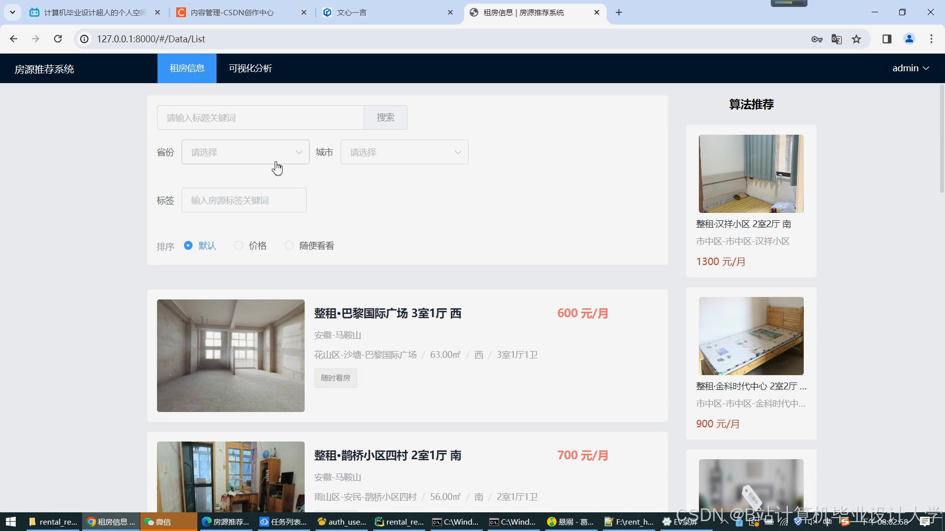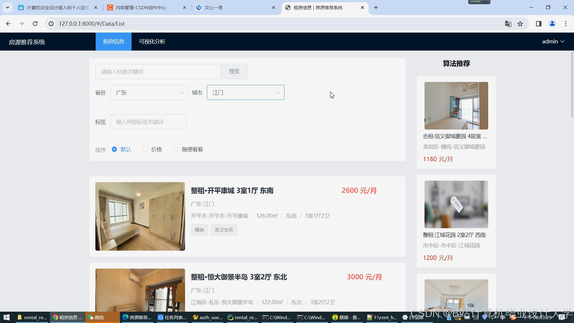 Django+Vue.js租房推荐系统与租房大屏可视化研究