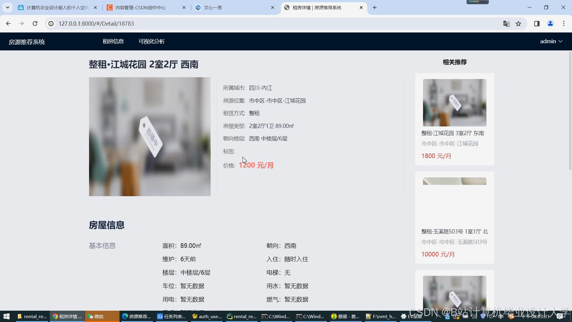 本文提出的Django+Vue.js租房推荐系统与大屏可视化方案,通过混合推荐算法与动态数据展示,显著提升了租房平台的个性化服务能力与运营管理水平。实验表明,系统在推荐精准度、大屏响应速度等方面优于传统方法。未来工作将探索以下方向: