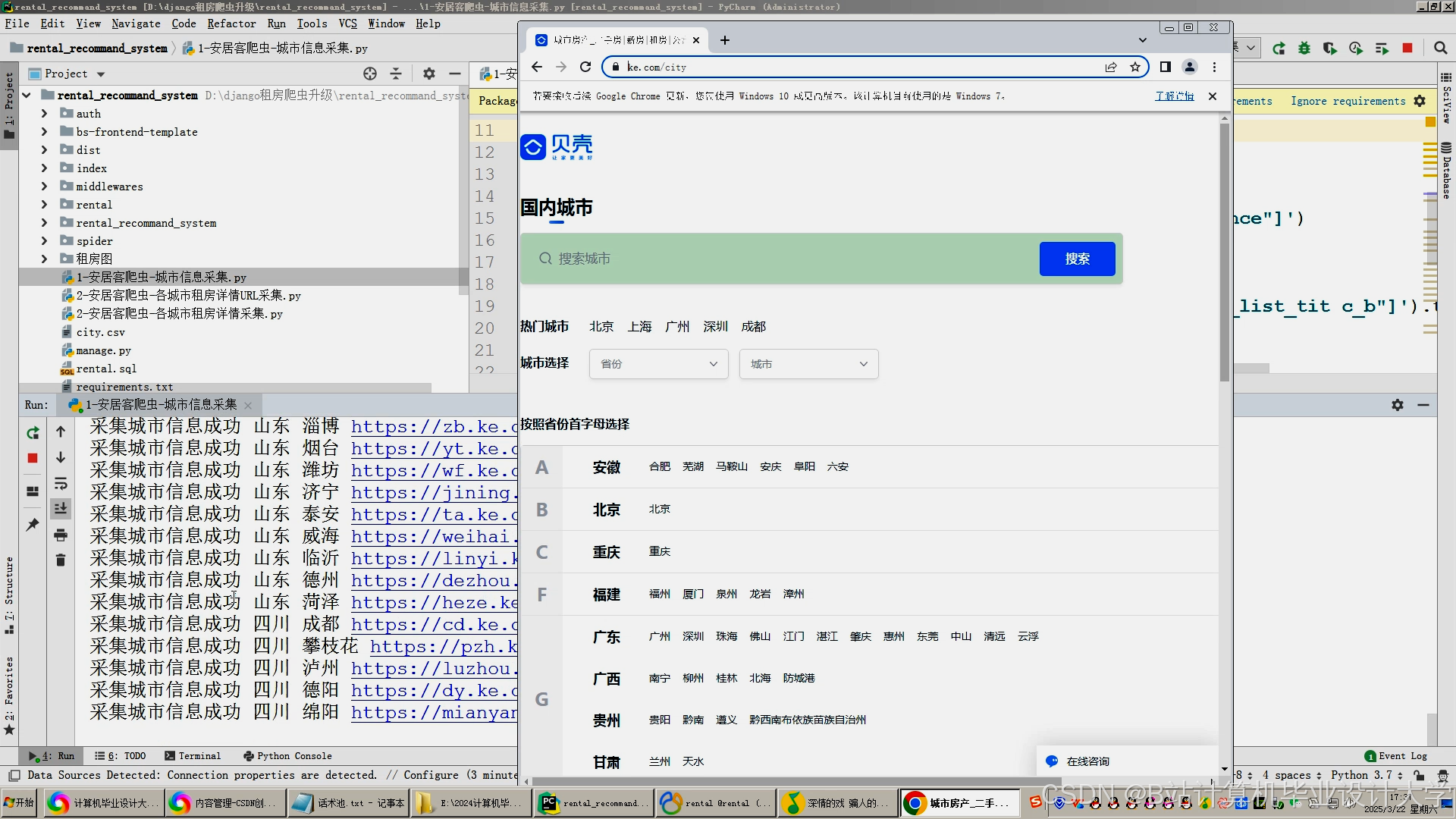 - WebSocket实时推送:通过Django Channels实现大屏与后端的数据同步,例如实时更新某区域新上租房源数量。
