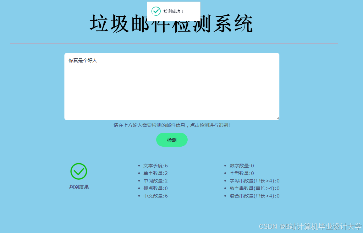 - 实现系统的实时检测功能,能够快速对新收到的邮件进行分类和检测,不影响用户的正常使用体验。