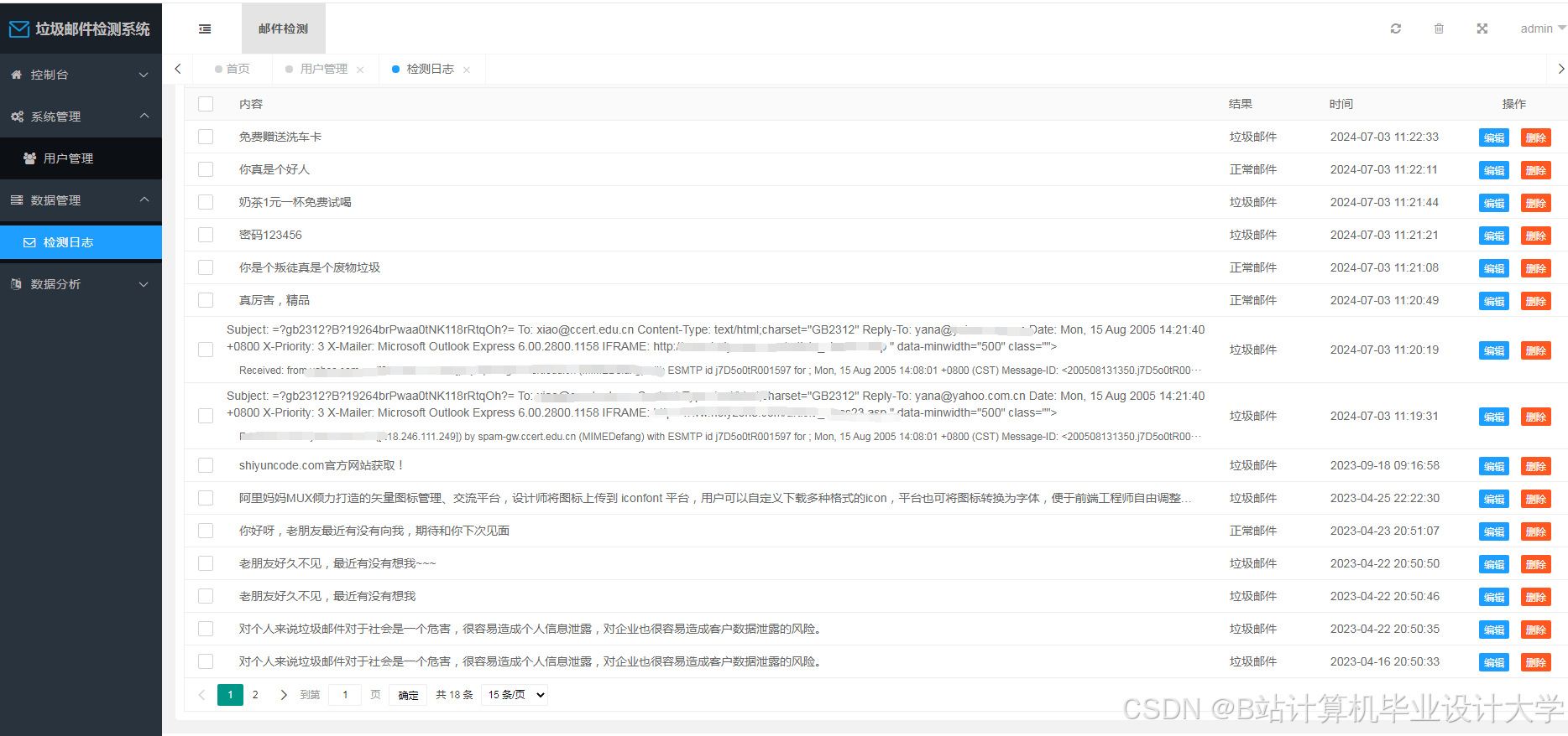 - 数据来源:从公开的垃圾邮件数据集(如SpamAssassin数据集、Enron数据集等)和实际邮箱系统中采集邮件数据,包括正常邮件和垃圾邮件。