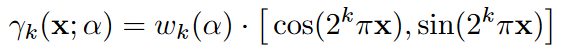 处理上述问题的方法是加一个mask,作为一个低通滤波器,第k频率的位置编码就变成了