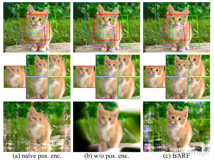 NeRF需要准确相机标定,本文想在不完美相机标定或完全未知标定情况下重建,学习三维表示并配准相机帧,bundle-adjustment是sfm中的一种方法。本文建立了与经典图像对齐的理论联系,且展示了coarse-to-fine配准同样适合nerf。并且发现简单地使用位置编码对合成物体(指的应该是不同于原始数据,由算法生成的数据)的校准有负面影响。