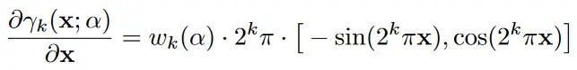 为了保持一致性, 三维情况下x表示三维坐标,W表示nerf中的网络。NeRF实际上是用MLP f把三维坐标映射到四维输出,记为