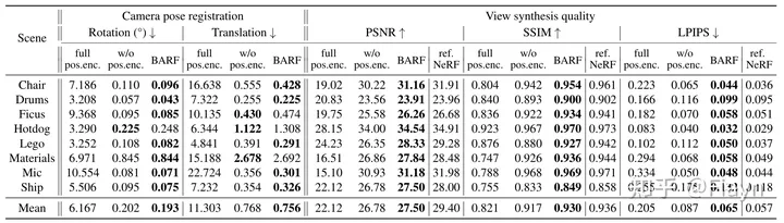 - BARF可以从不完美相机位姿中重建场景三维表示,使得新视角合成和视频序列定位能从位未知视角中获得