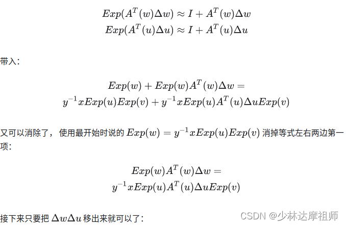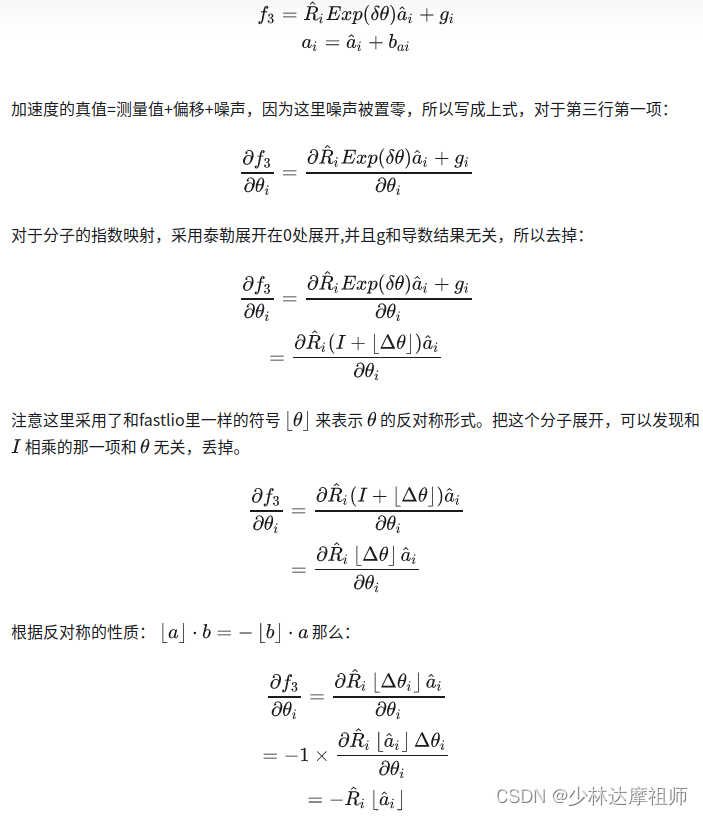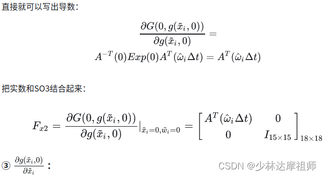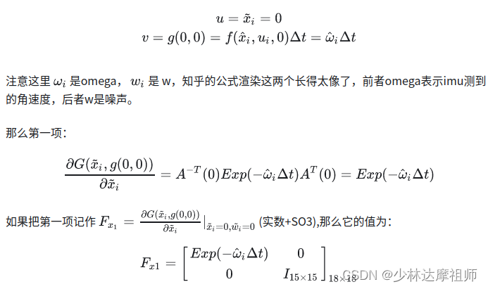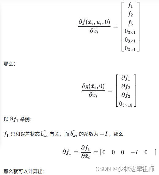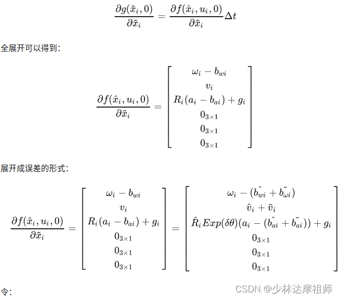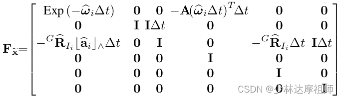 在FAST-LIO中对于误差状态转移方程的描述以及线性化结果如下: