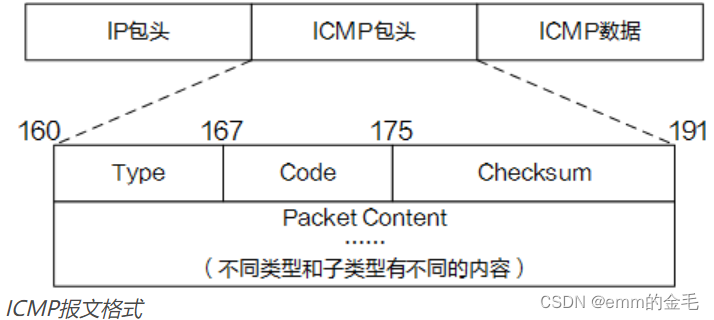 - Checksum字段表示ICMP报文的校验和。