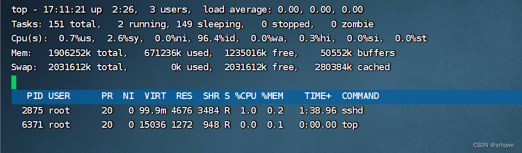 命令top监控系统资源: