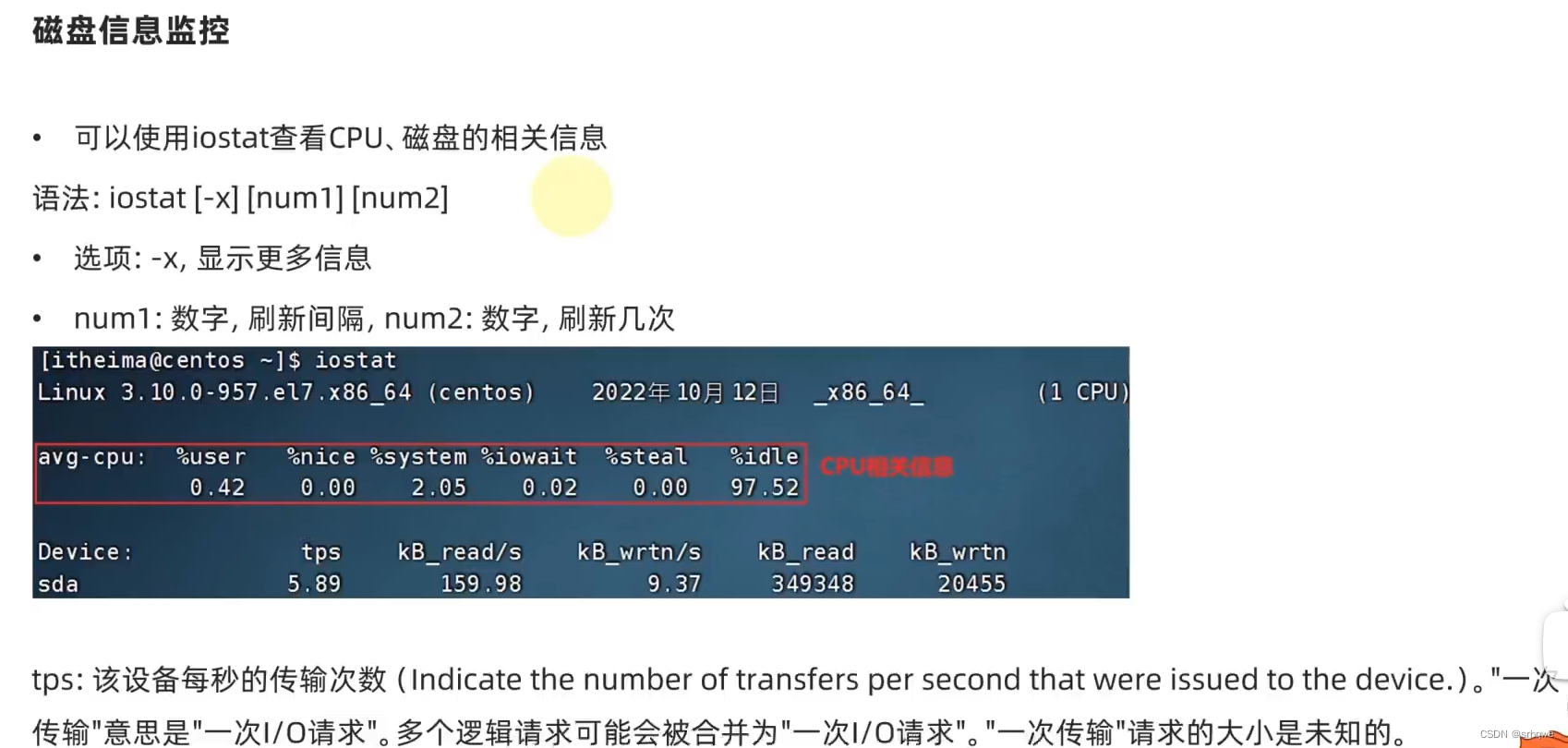 命令iostat查看cpu、磁盘