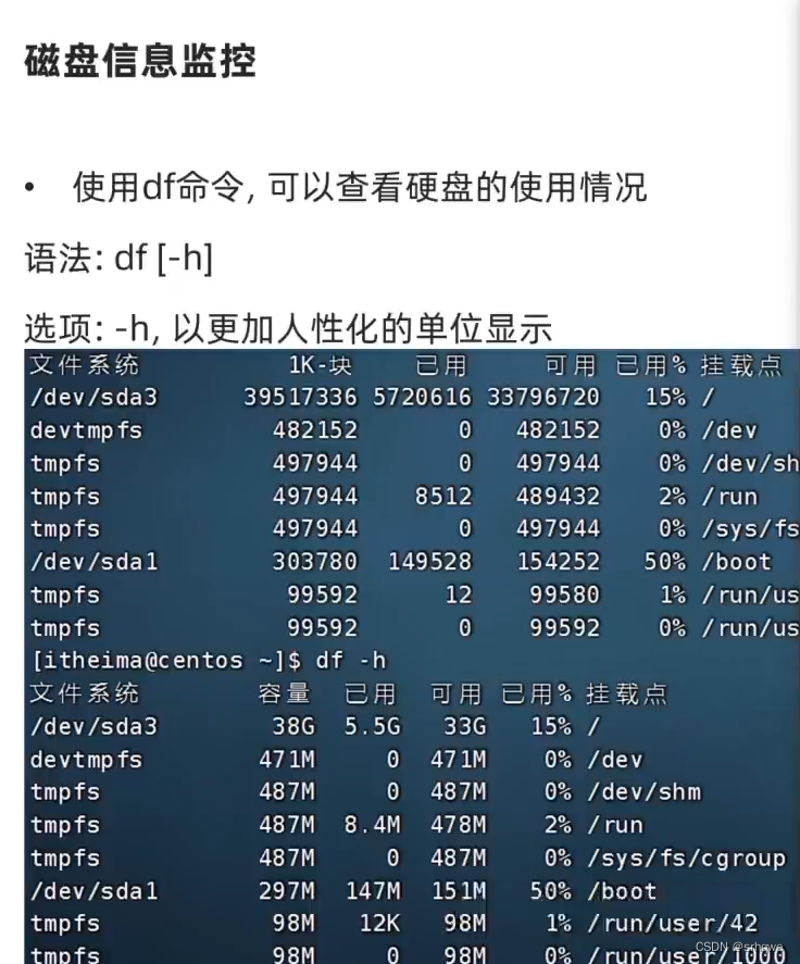 命令df监控磁盘信息: