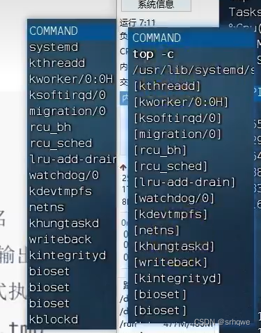 使用-c后,得到top内部会显示这个进程的完整命令或路径。不使用时,只是精简的: