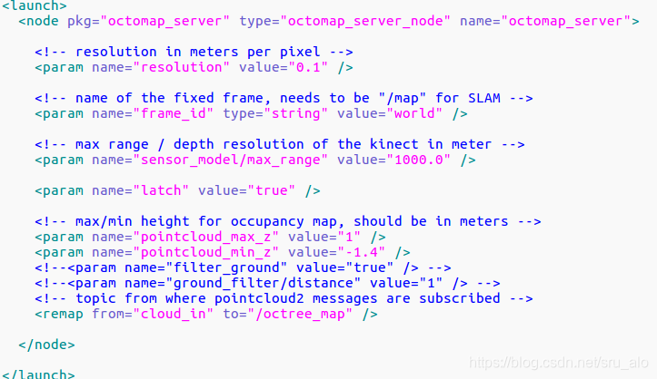 可以通过一个launch文件启动octomap_server节点,如下: