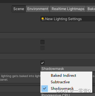 在Light中Mode设置为Mixed时,Lighting Mode(在Window->Rendering->Light->Scene)有三种选项如下图: