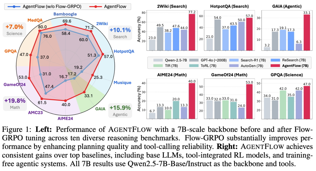 AgentFlow,是一种能够在线优化智能体系统的新范式,可以持续提升智能体系统对于复杂问题的推理能力。