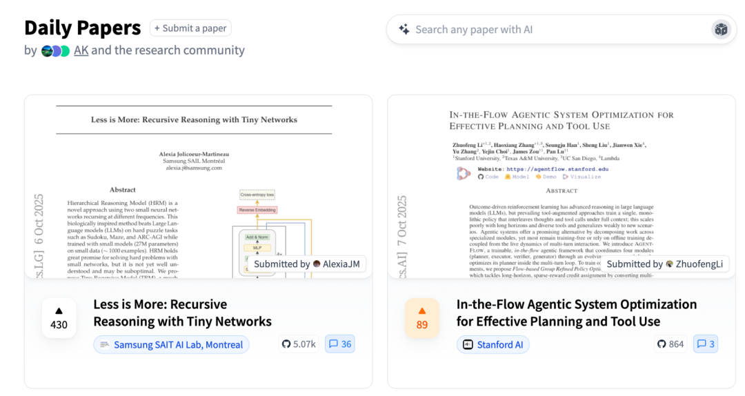 AgentFlow是由四个专业智能体(规划器、执行器、验证器、生成器)组成的新范式,通过Flow-GRPO流中强化学习算法实时优化系统。以Qwen-2.5-7B-Instruct为基座的AgentFlow在10个基准测试中表现优异,搜索、智能体、数学和科学任务分别提升14.9%、14.0%、14.5%和4.1%,超越GPT-4o等大模型50倍规模的模型。研究表明,合理的系统设计和训练方法比单纯堆砌参数更有效,"协同能力"可能取代"规模"成为衡量智能的新指标。