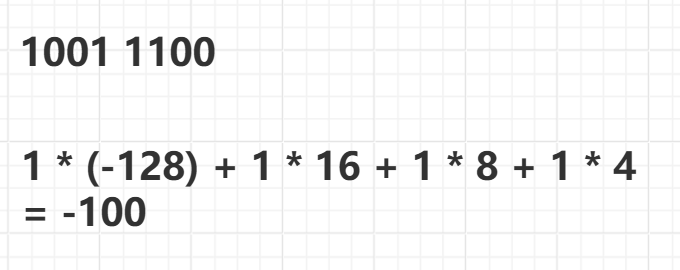所以 1001 1100 就是 -100 的二进制补码序列。