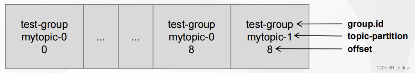 __consumer_offsets中主要存储两种对象: groupMetadata(消费者信息、消费者编号 从这里知道消费者是消费哪个组的)、OffsetAndMetadata(分区以及offset)
