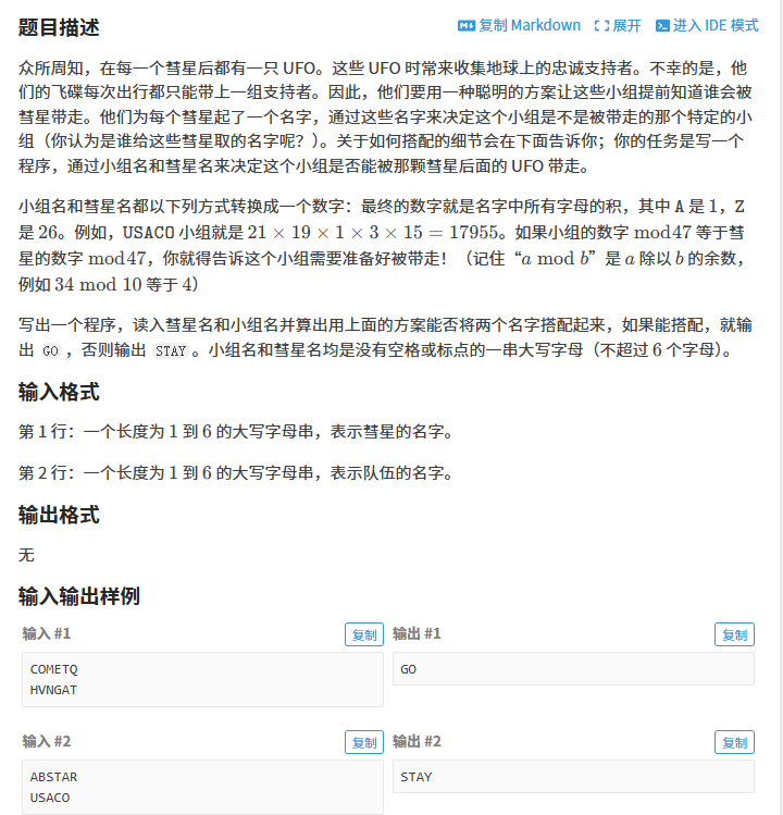 在浩瀚的宇宙中,UFO通过神秘的彗星密码与地球上的支持者沟通。本文将带你用C++实现这个神奇的密码匹配系统,掌握字符串处理与模运算的精妙技巧!