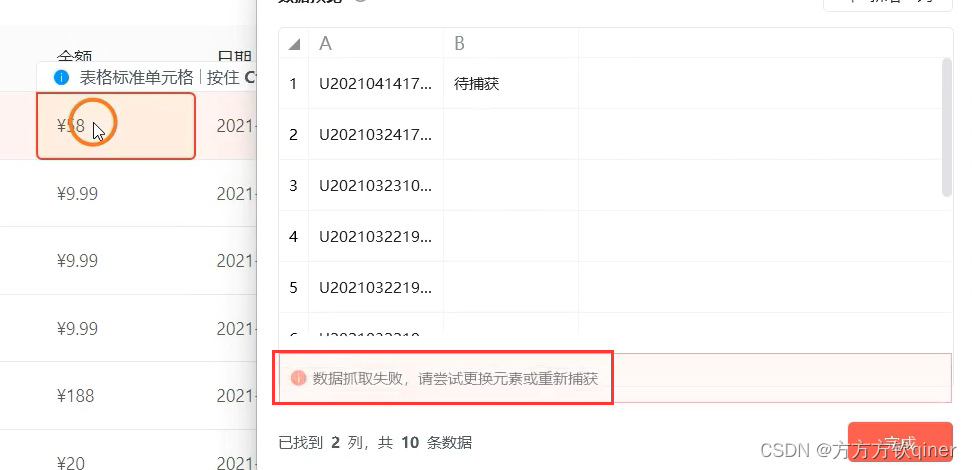 注意,若出现如下报错,只需要重选相似元素捕获即可。