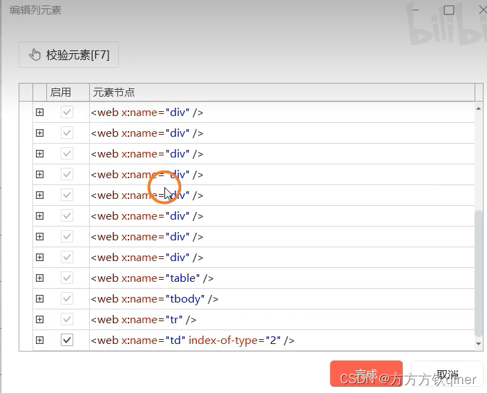 其中,有“编辑列”,类似捕获元素时的元素编辑,是该列的元素属性。通过“校验元素”,可以验证捕获元素是否正常,有问题时需要进行元素编辑。
