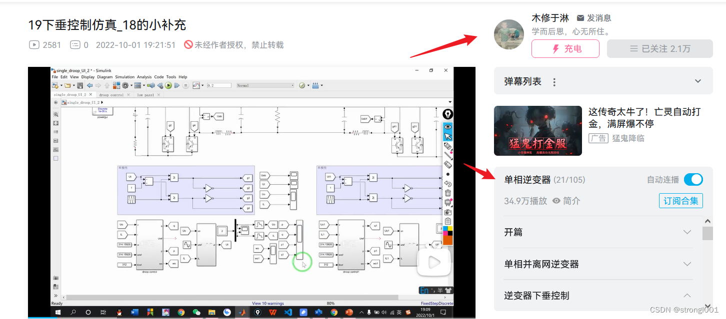 MPPT杂记 外界环境的变化不会引起光伏板特性的跳变,所以MPPT控制和采样频率不用太高,10Hz都已经挺高了。PID的积分初始值可以设置下,这样仿真开始的波形会好看点。滤波器设计可以参考下面up主的内容。锁相环参数设置(供参考)采样数据用零阶保持器。