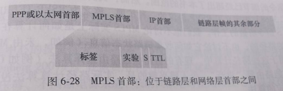 在本书中并不学习MPLS的具体实现方式。关注的重点在于①MPLS基于标签执行交换,而不考虑分组的IP地址 ②MPLS使能具有新的流量管理功能,IP路由选择协议只能指定单一最小费用路径,而MPLS提供了沿着多条路由转发分组的能力③MPLS可以用于实现虚拟专用网(VPN),使得用户利用VPN跨ISP访问资源