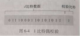 差错检测最简单的方式就是用单个奇偶校验位,如果在下图中要发送的信息D中有d比特。在偶校验方案中,发送方只需呀加一个附带的比特,选择它的值,使得这d+1比特中1的总数是偶数,奇方案中则使其为奇数。