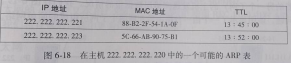 在每台路由器和主机中都会有一个ARP表,包含IP到MAC的映射关系,同时还有该映射的TTL值(指示该映射从表中删除的时间)。