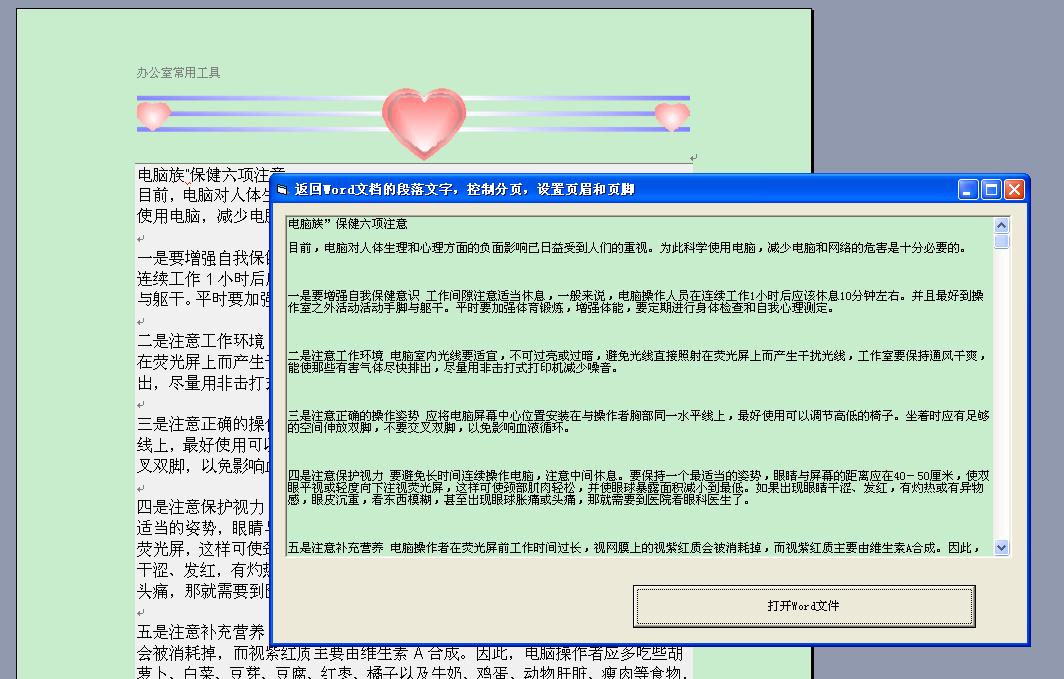 1、返回Word文档的段落文字,控制分页,设置页眉和页脚
