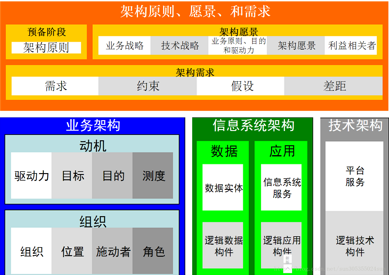 以下简要的介绍一下,总体企业架构的理论框架图: