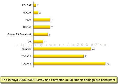 根据以上三个调研机构的报告,TOGAF的占有率已经超过百分之五十。