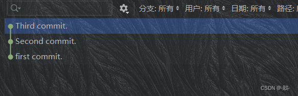 (3)这时候,文件的颜色会变回正常。再次点击Git,我们就会看见第二次提交的记录。同时右侧也会显示我们刚刚提交了哪些文件。