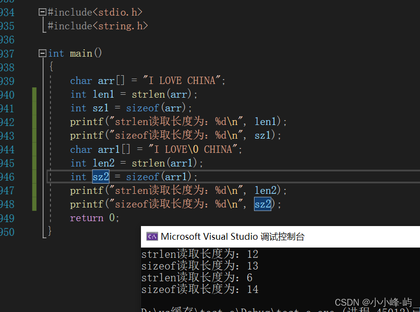 printf("sizeof读取arr2[]长度为:%d\n", sz2);