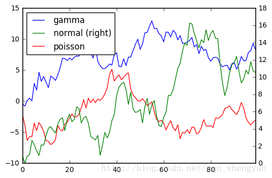 相对于 matplotlib 来讲,Pandas 支持 DataFrame 和 Series 两种比较高级的数据结构,可以想象得到用其绘制出图像的形式。