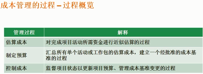(3)输出:成本绩效基准(绩效测量基准PMB)、项目资金需求、项目文件(更新 风险登记册、成本估算、项目进度计划)