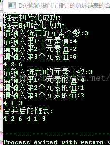 //由于只有尾指针,所以遍历合并后的链表要从第二个链表开始