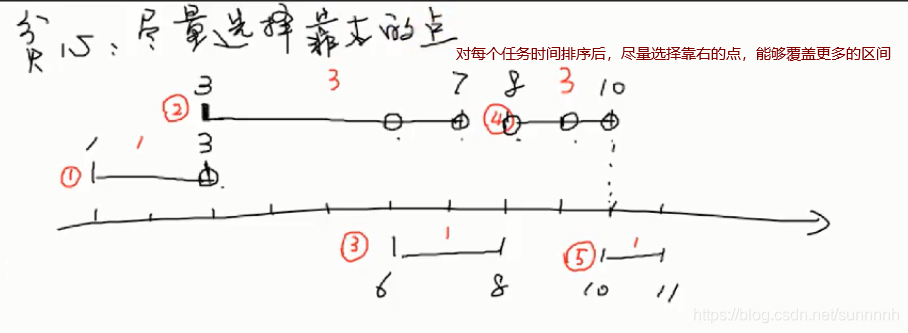 如果选取一个区间的终点,命中了多个区间,接着再从未命中区间的终点开始选取点