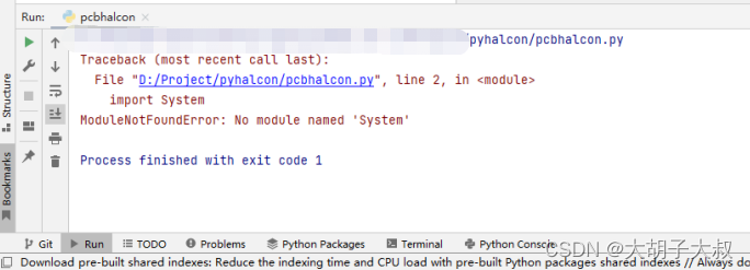本人在做python和halcon接口的时候发现程序需要'System'库,报下面的错误