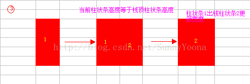 (3)当入栈柱状条的高度等于栈顶柱状条的高度时,柱状条出栈,更新当前柱状条宽度。如图3