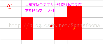 (1)当入栈柱状条的高度大于栈顶柱状条的高度或者栈为空时,柱状条入栈;如图1