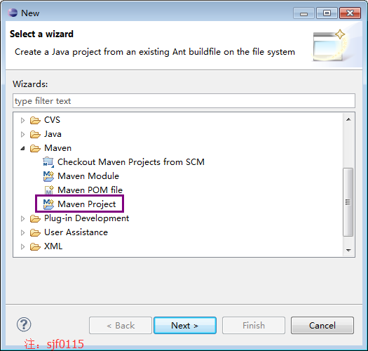 使用IDE创建一个Maven项目非常简单,选择菜单项File->New->Other,在弹出的对话框中选择Maven下的Maven Project,然后点击Next按钮。