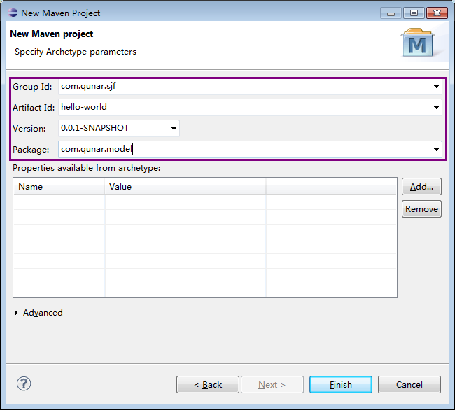 此时m2eclipse会提示我们选择一个Archetype。这里选择maven-archetype-quickstart,再点击Next按钮。m2eclipse实际上是使用maven-archetype-plugin插件创建项目。