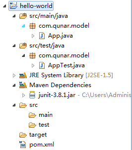 单击Finshi按钮,Maven项目就创建完成了。项目目录结构如下: