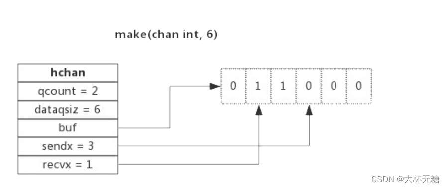 recvx uint // 队列下标,指示元素从队列的该位置读出