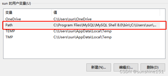 1、查看环境变量配置,用户变量下添加mysql路径