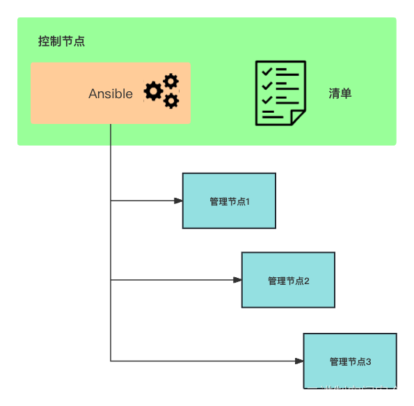 控制节点 - 安装有Ansible的系统。我们可以在控制节点上运行Ansible命令,如
