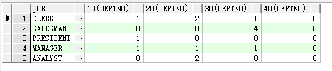 select * from tmp_tab t pivot (count(1) for deptno in(10, 20, 30, 40));